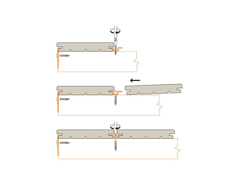 Het bevestigen van de planken en clips is een zeer eenvoudig en snel proces.